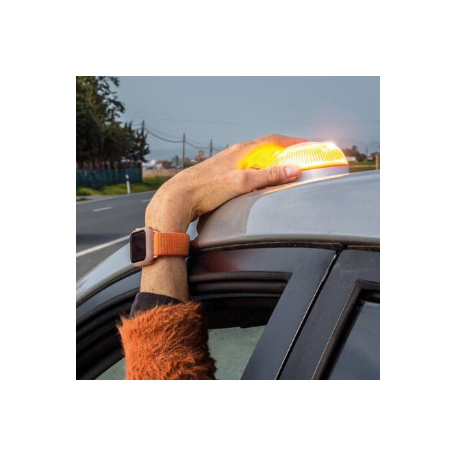 Colócala sobre el techo del vehículo gracias a su imán de neodimio sin necesidad de salir del habitáculo. Funciona con 3 pilas AA super alcalinas (incluidas), fáciles de reemplazar y económicas.